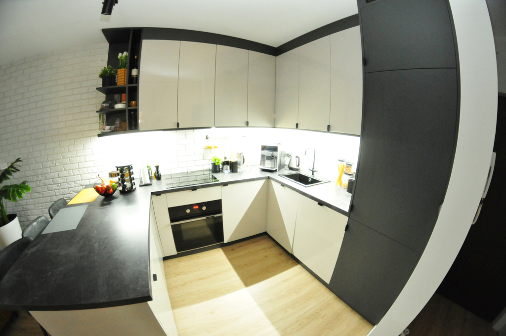 Wyposażenie: Lodówka zabudowana, Okap, Piekarnik elektryczny, zmywarka